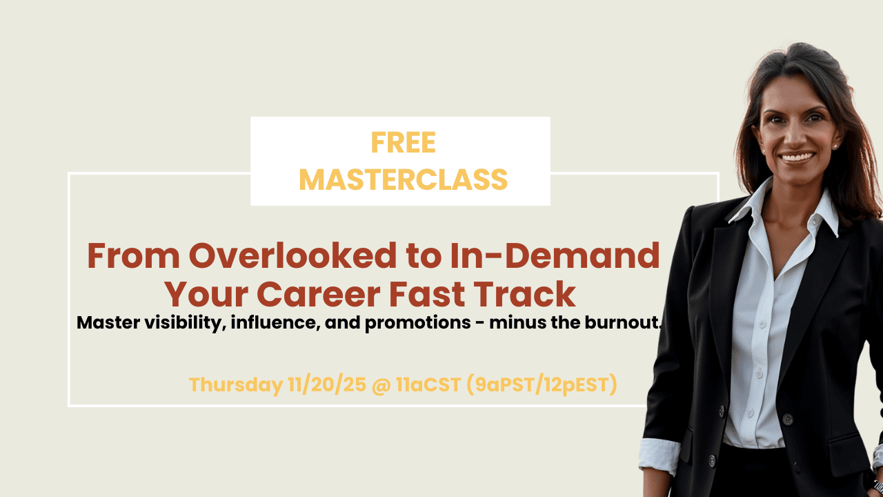 You’ll learn the exact framework my clients use to go from overlooked to in-demand - getting recognized by senior leaders, leading high-impact projects, and increasing their salary by $10K–$60K in just months, without switching jobs, burning out, pretending to be someone you're not.